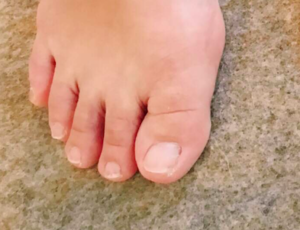 一番外側の小指が曲がっている内反小趾という状態も親指は曲がっていなくても外反母趾と同じ状況下です。